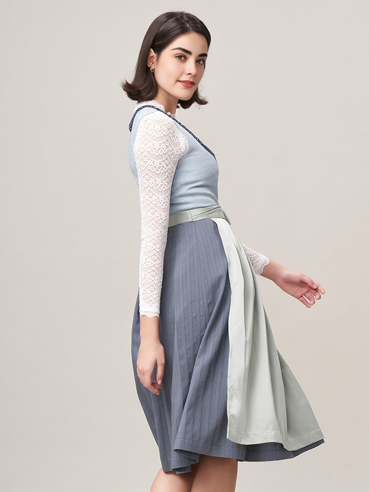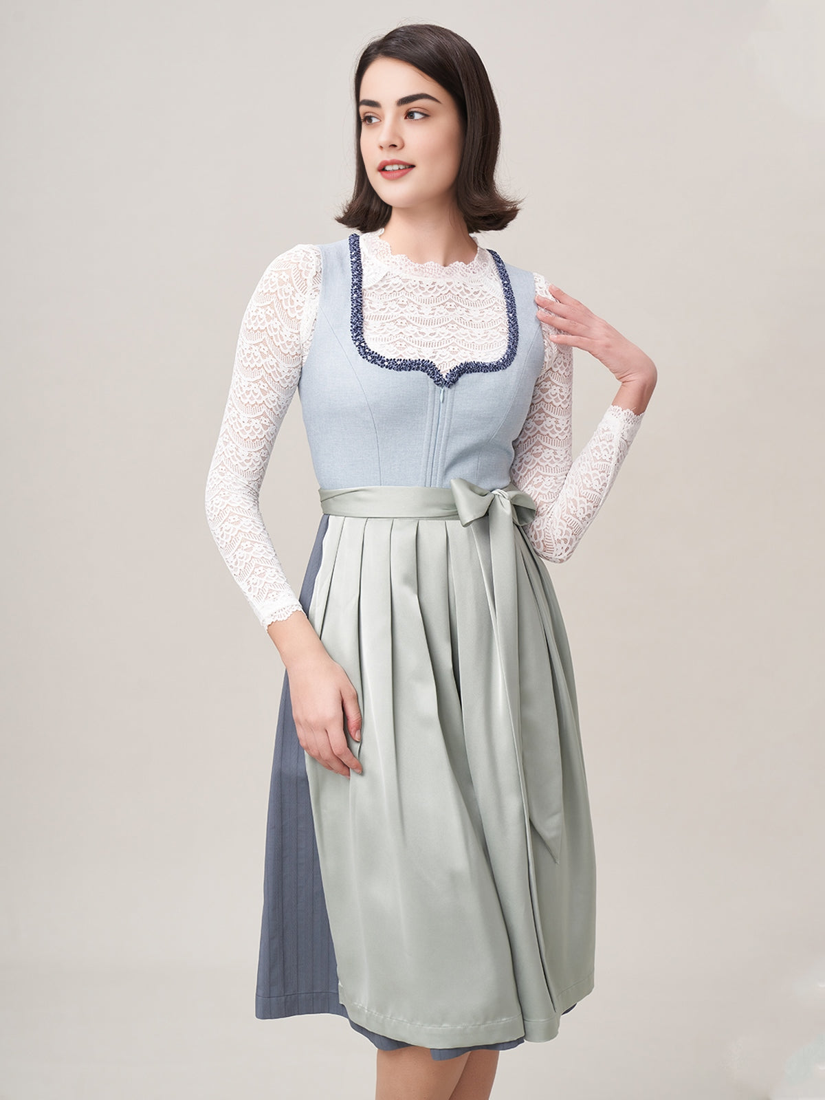 Damen Blau Reißverschluss Vorne Zwei Verdeckte Eingriffstaschen Dirndl Mandl