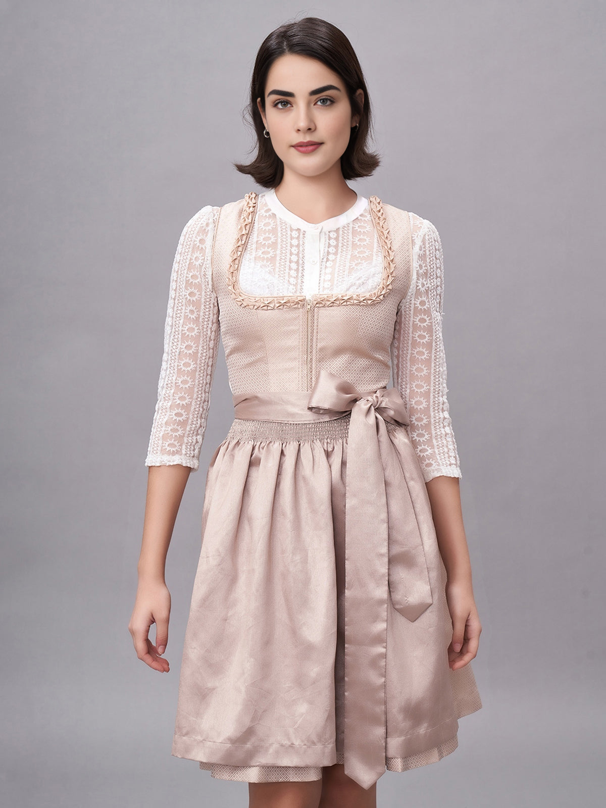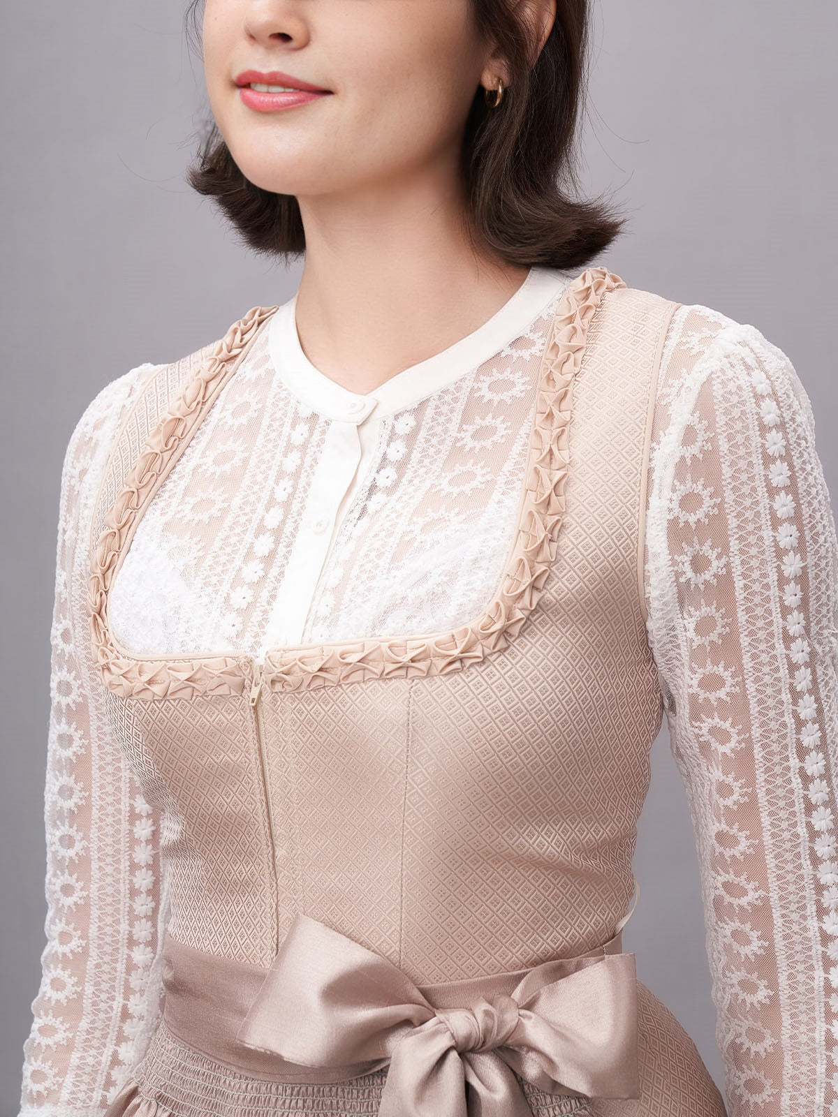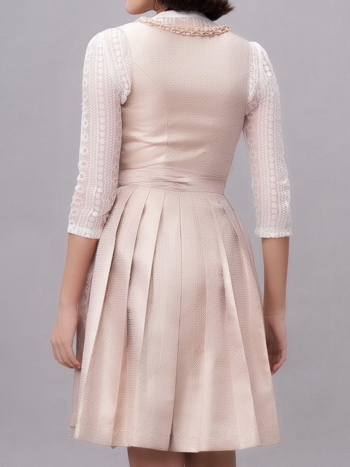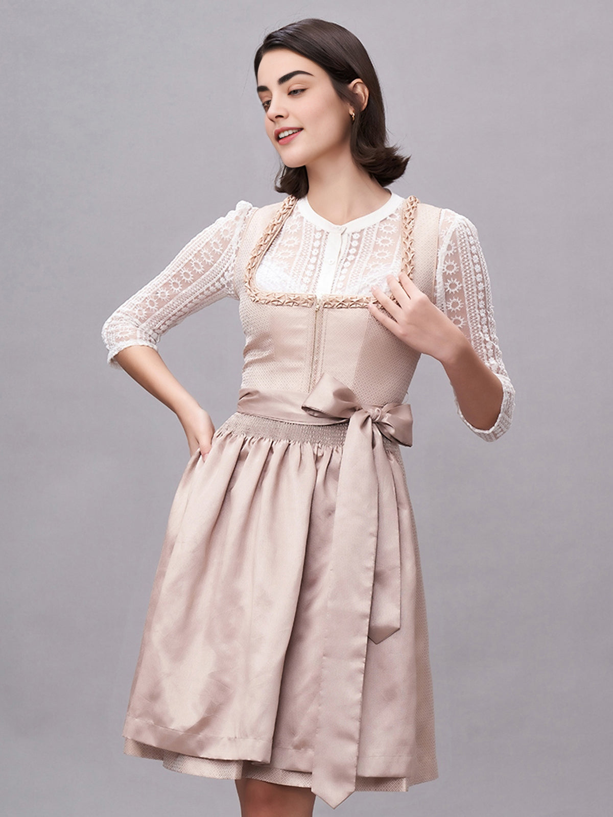 Damen Beige Reißverschluss Vorne Zwei Verdeckte Eingriffstaschen Dirndl Mila