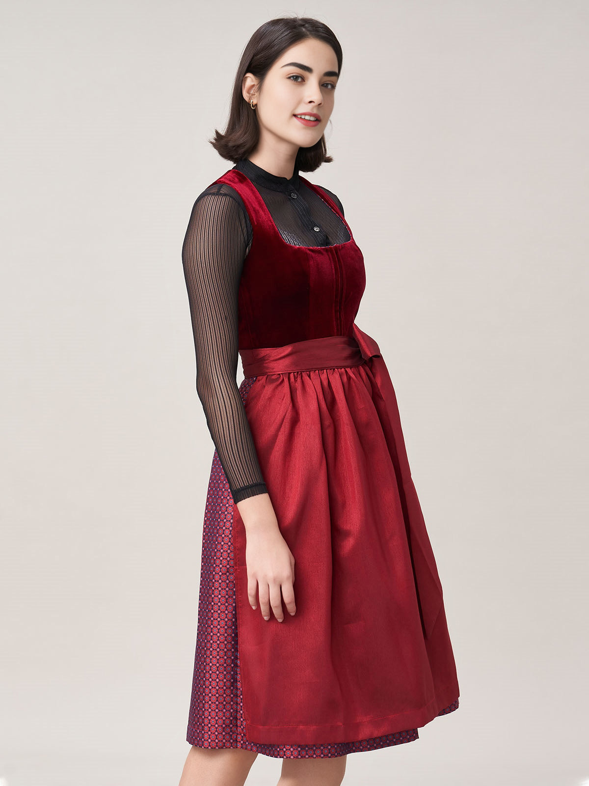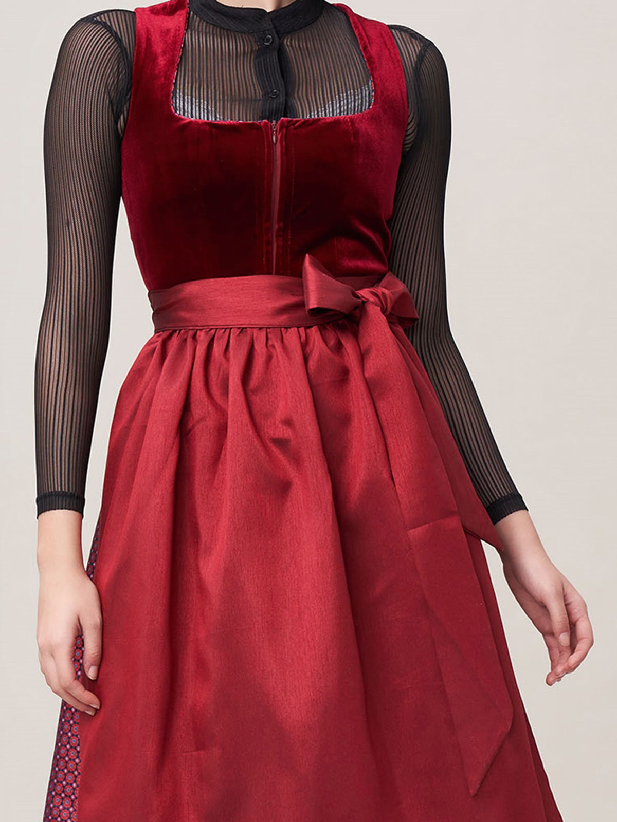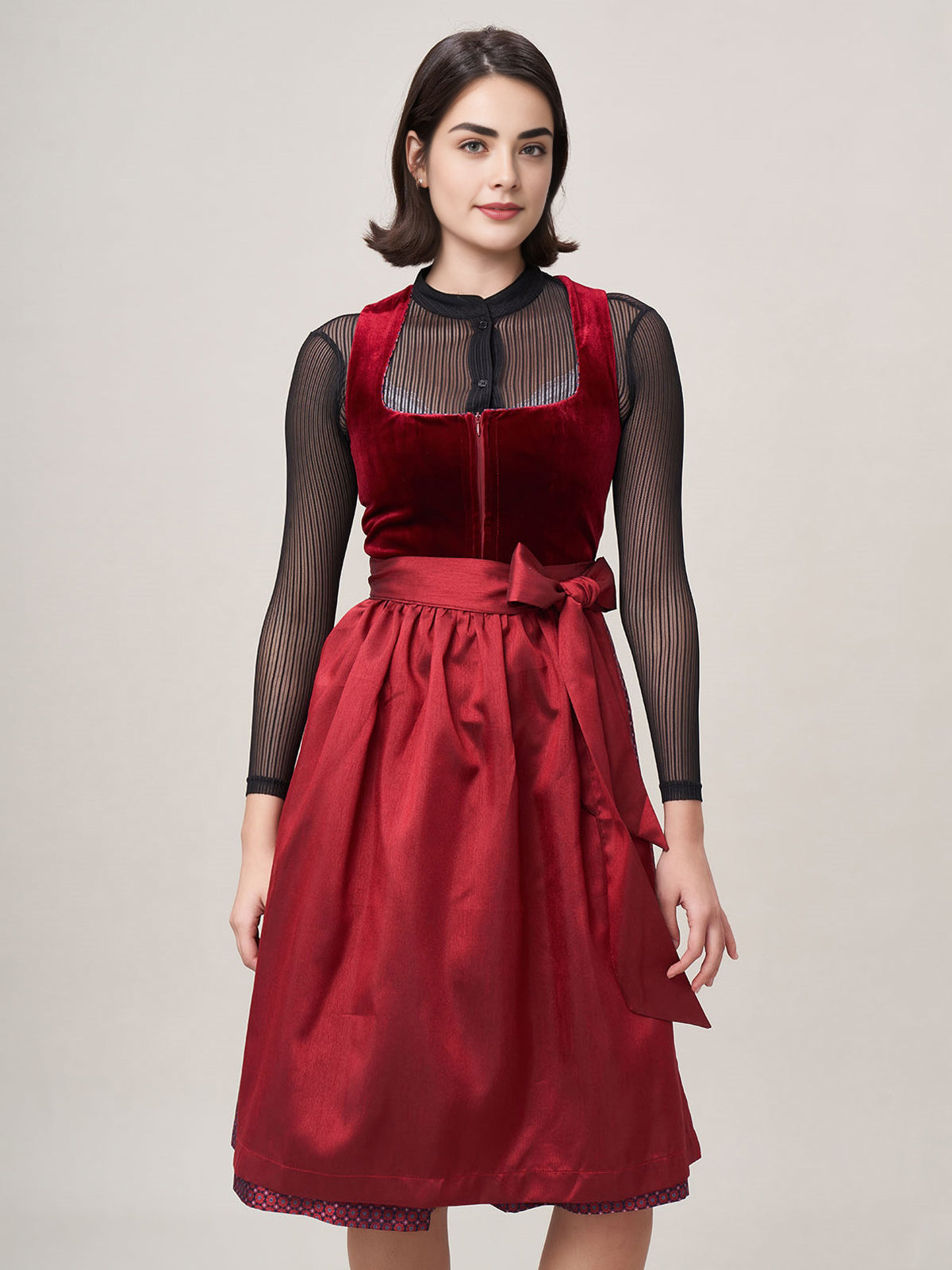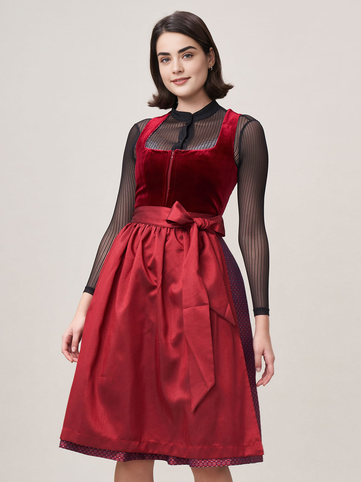 Damen Rot Reißverschluss Vorne Zwei Verdeckte Eingriffstaschen Dirndl Massia