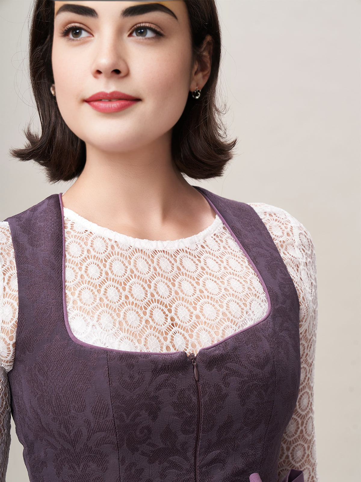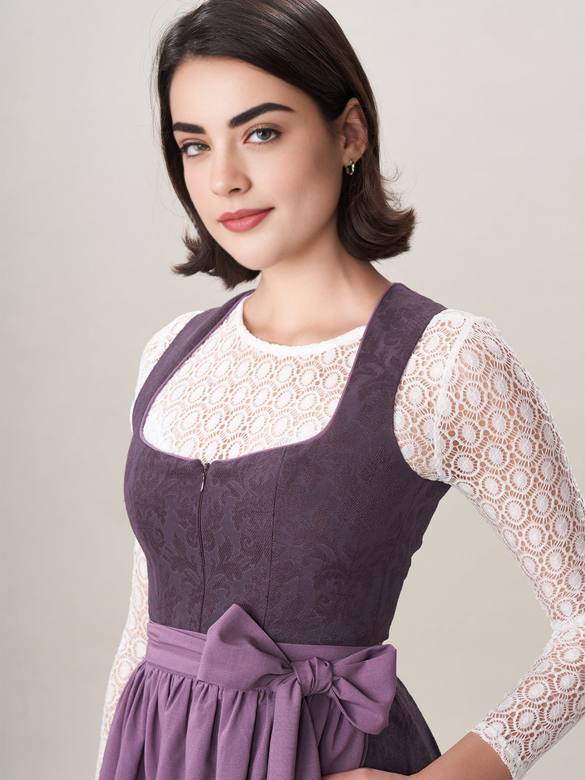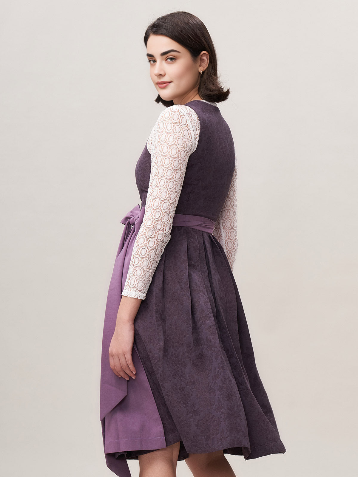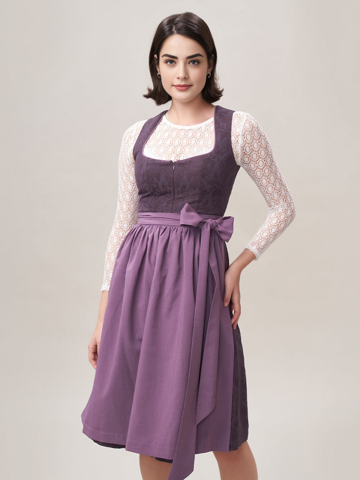 Damen Lila Reißverschluss Vorne Zwei Verdeckte Eingriffstaschen Dirndl Akela