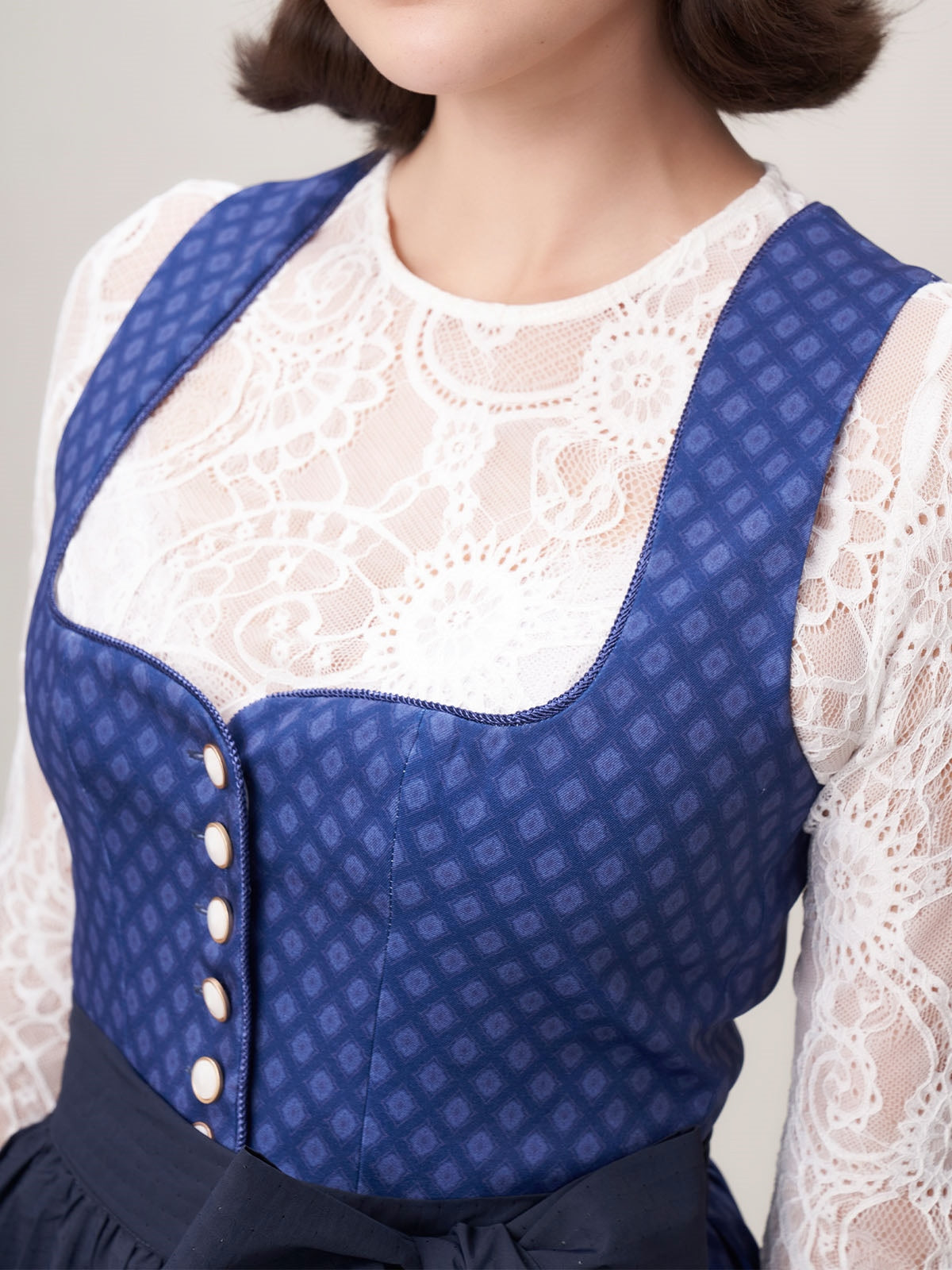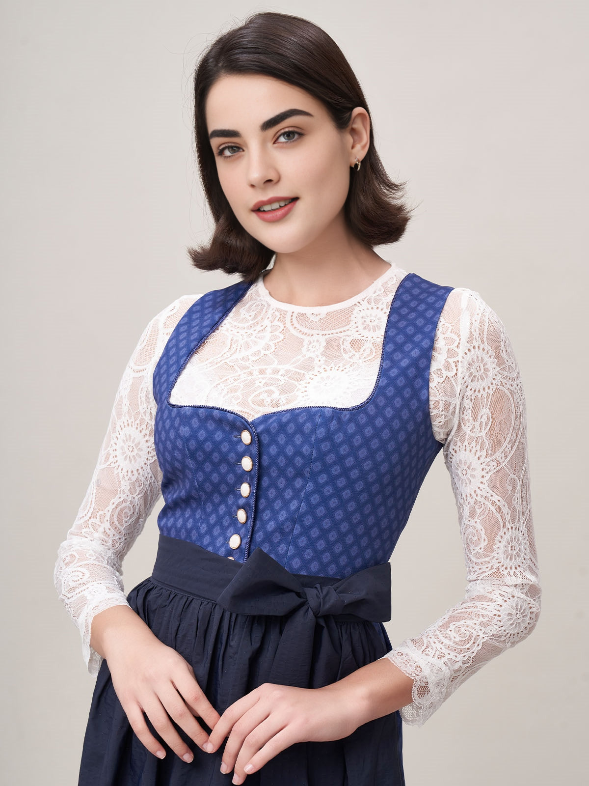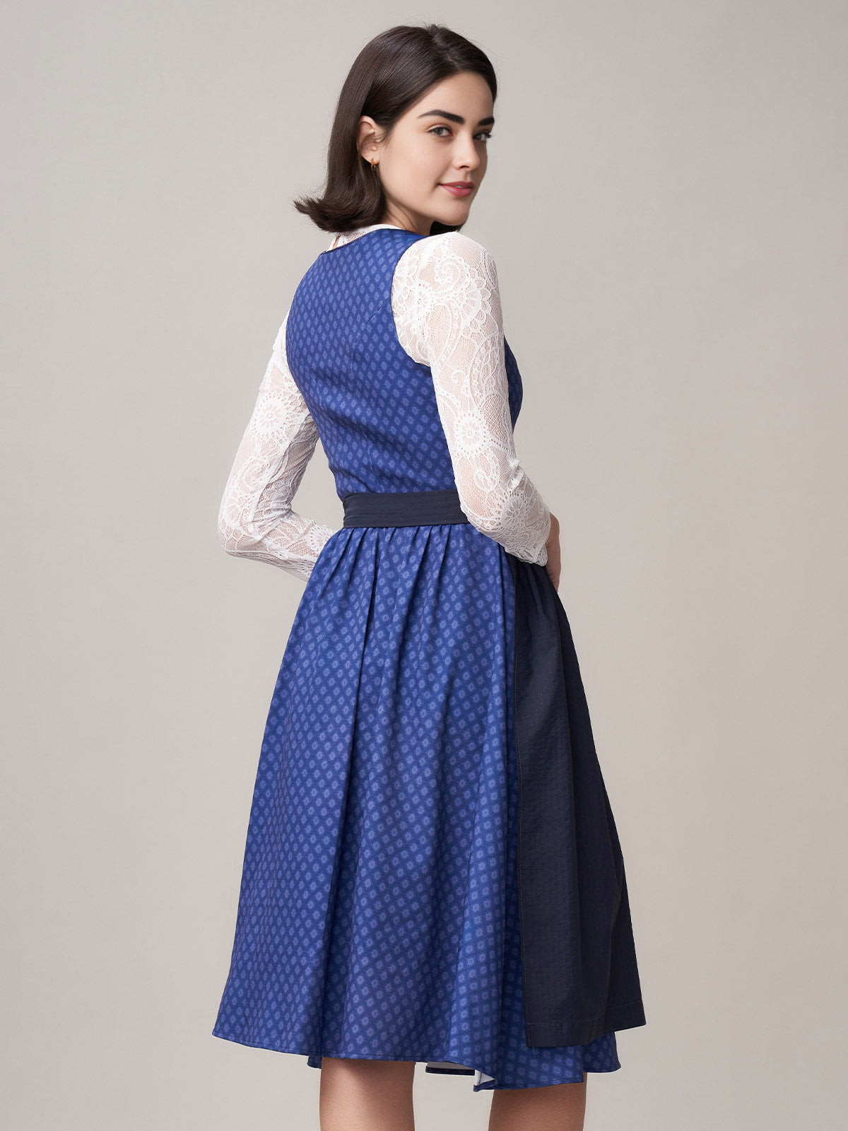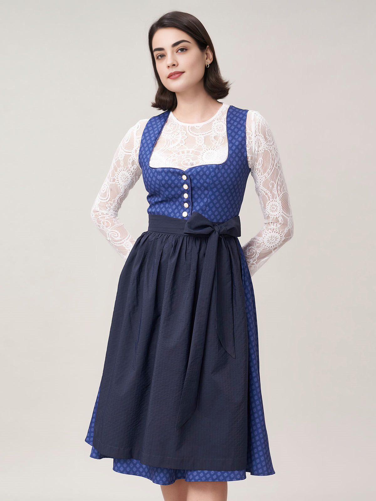 Damen Blau Knöpfen Zwei Verdeckte Eingriffstaschen Dirndl Daniela