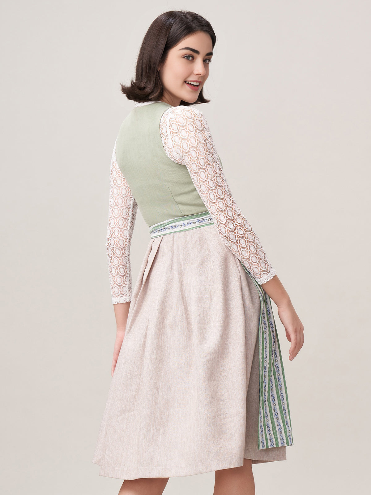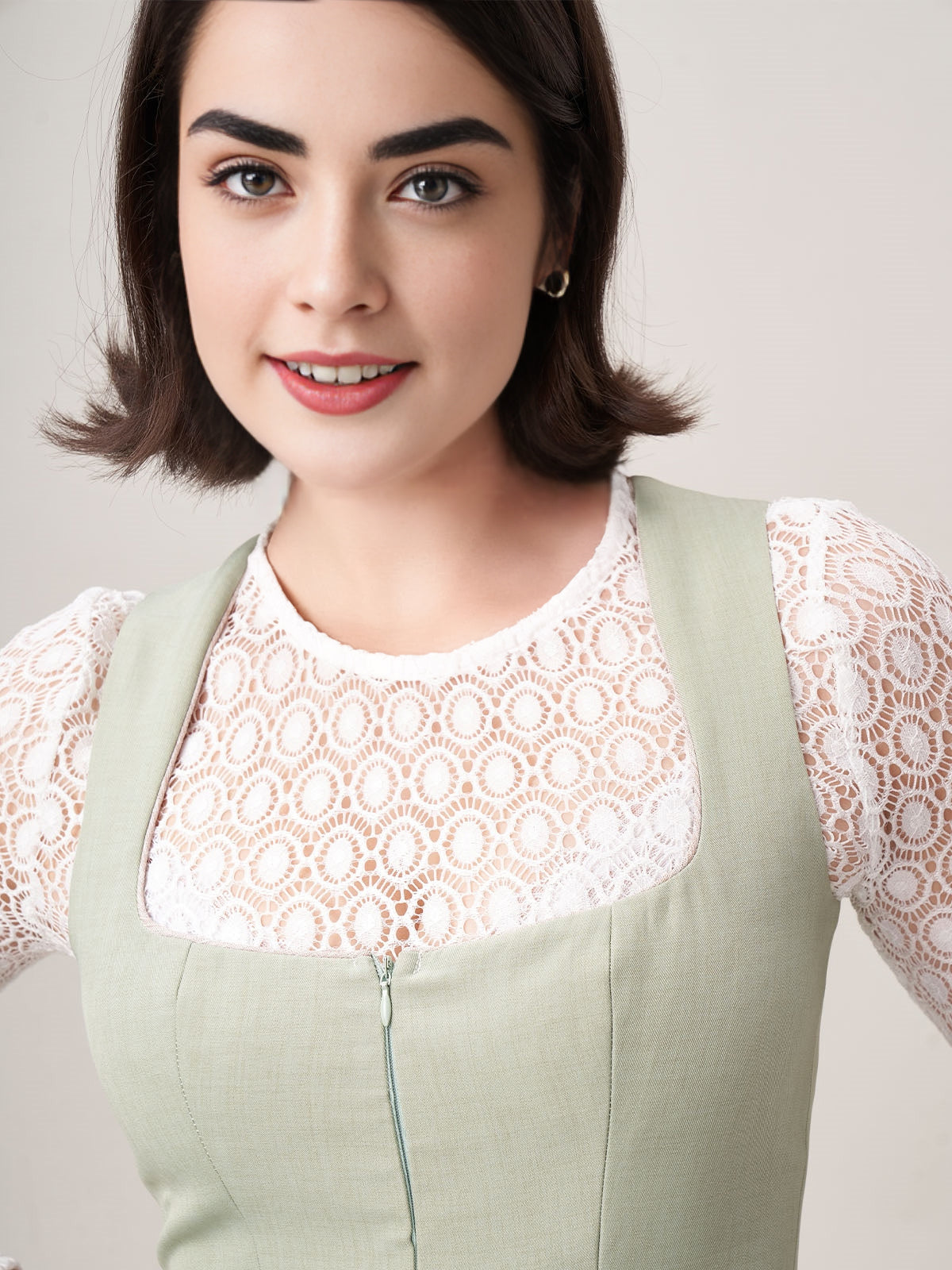 Damen Grün Reißverschluss Vorne Zwei Verdeckte Eingriffstaschen Dirndl Kristin