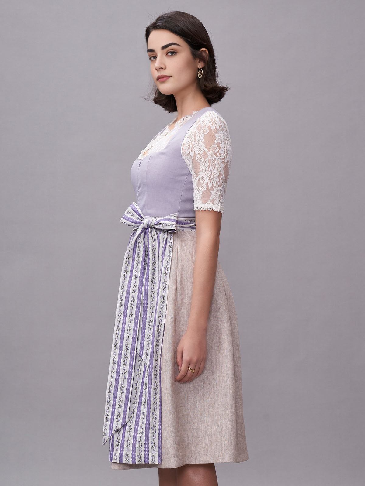 Damen Lila Reißverschluss Vorne Zwei Verdeckte Eingriffstaschen Dirndl Kristin