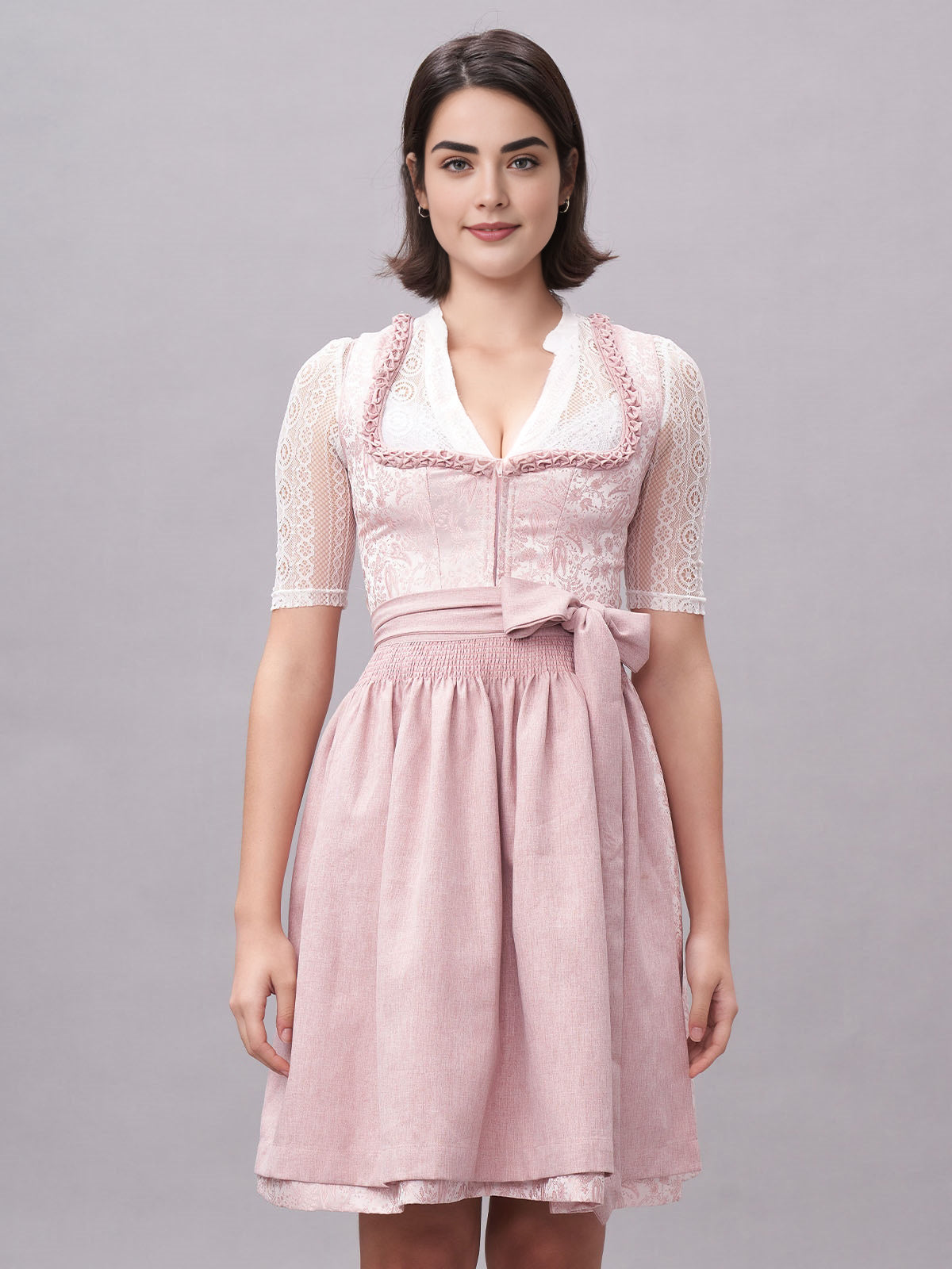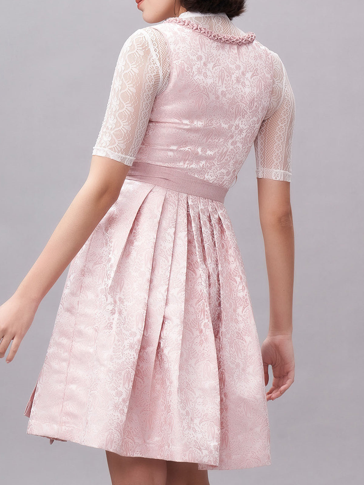 Damen Rosa Reißverschluss Vorne Zwei Verdeckte Eingriffstaschen Dirndl Rita