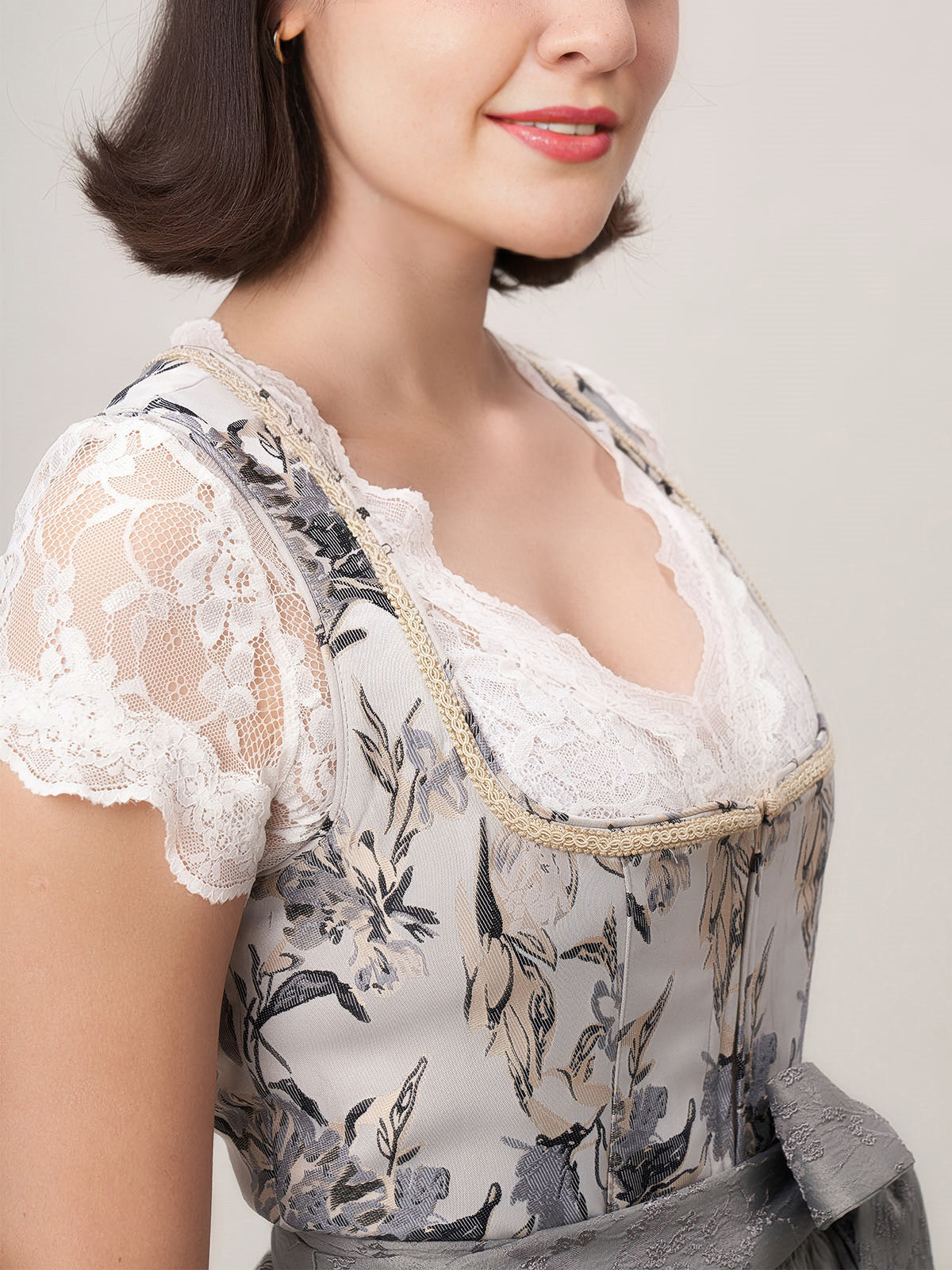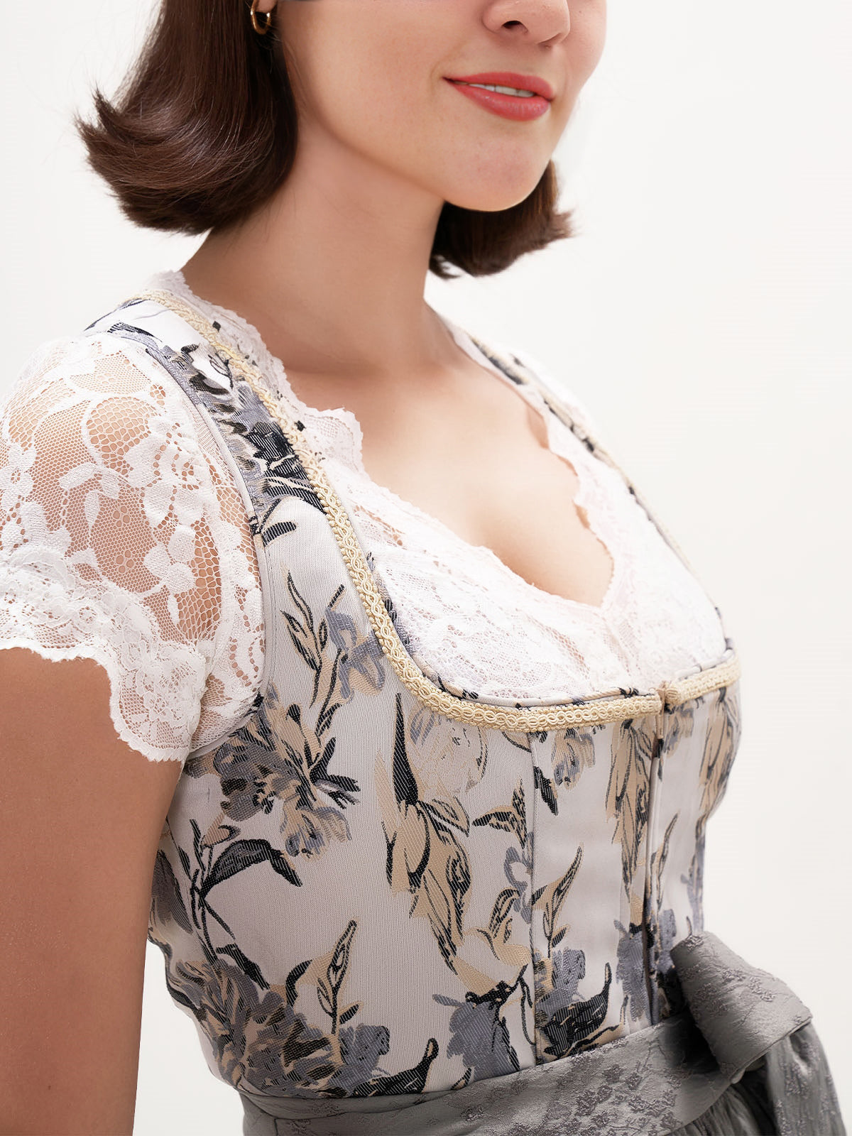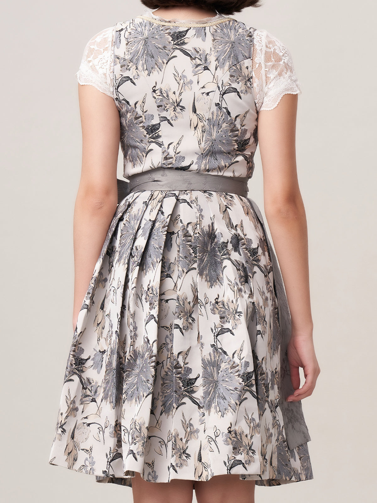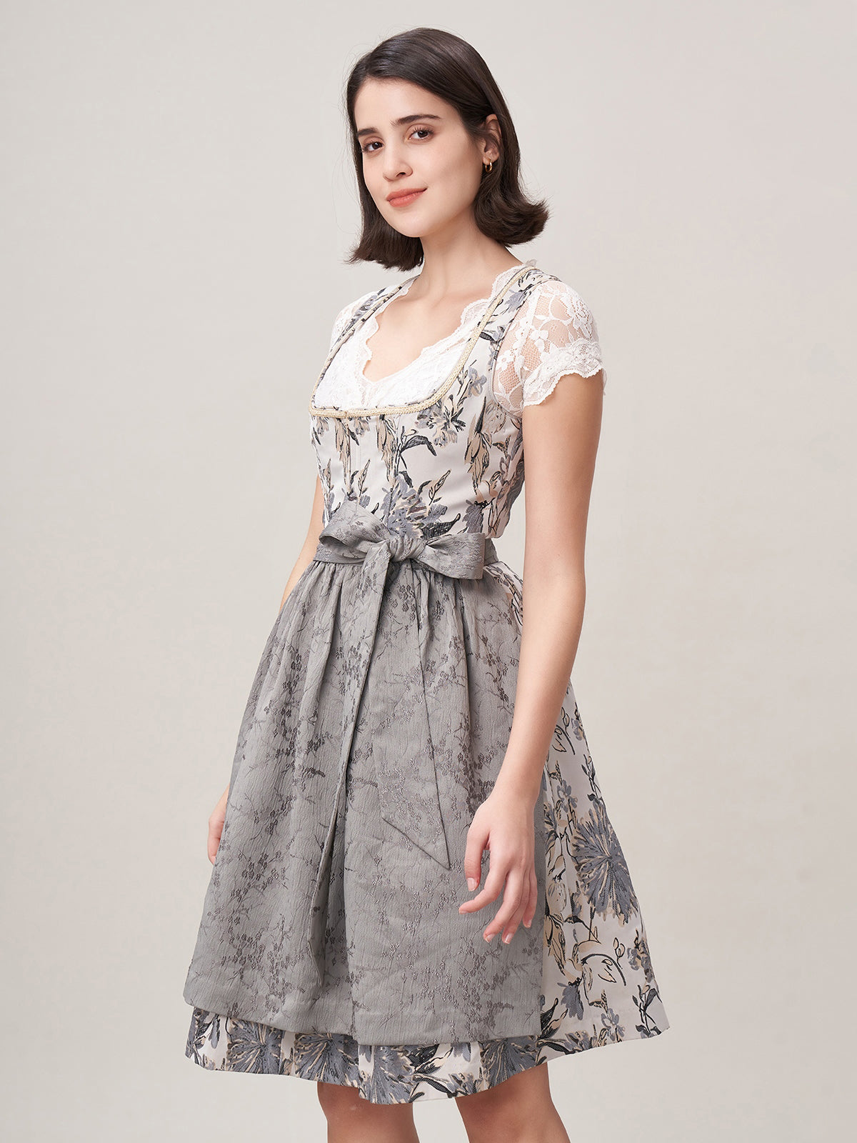 Damen Grau Reißverschluss Vorne Zwei Verdeckte Eingriffstaschen Dirndl Sista