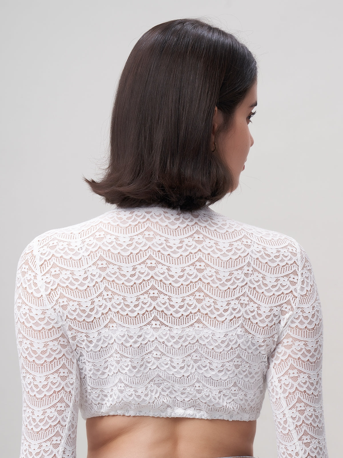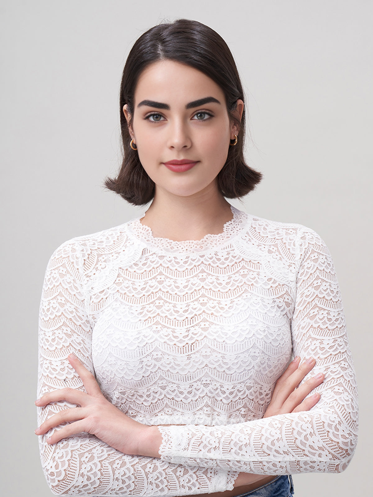 Weiß Rundhals Langarm Damen Dirndlblusen Baum