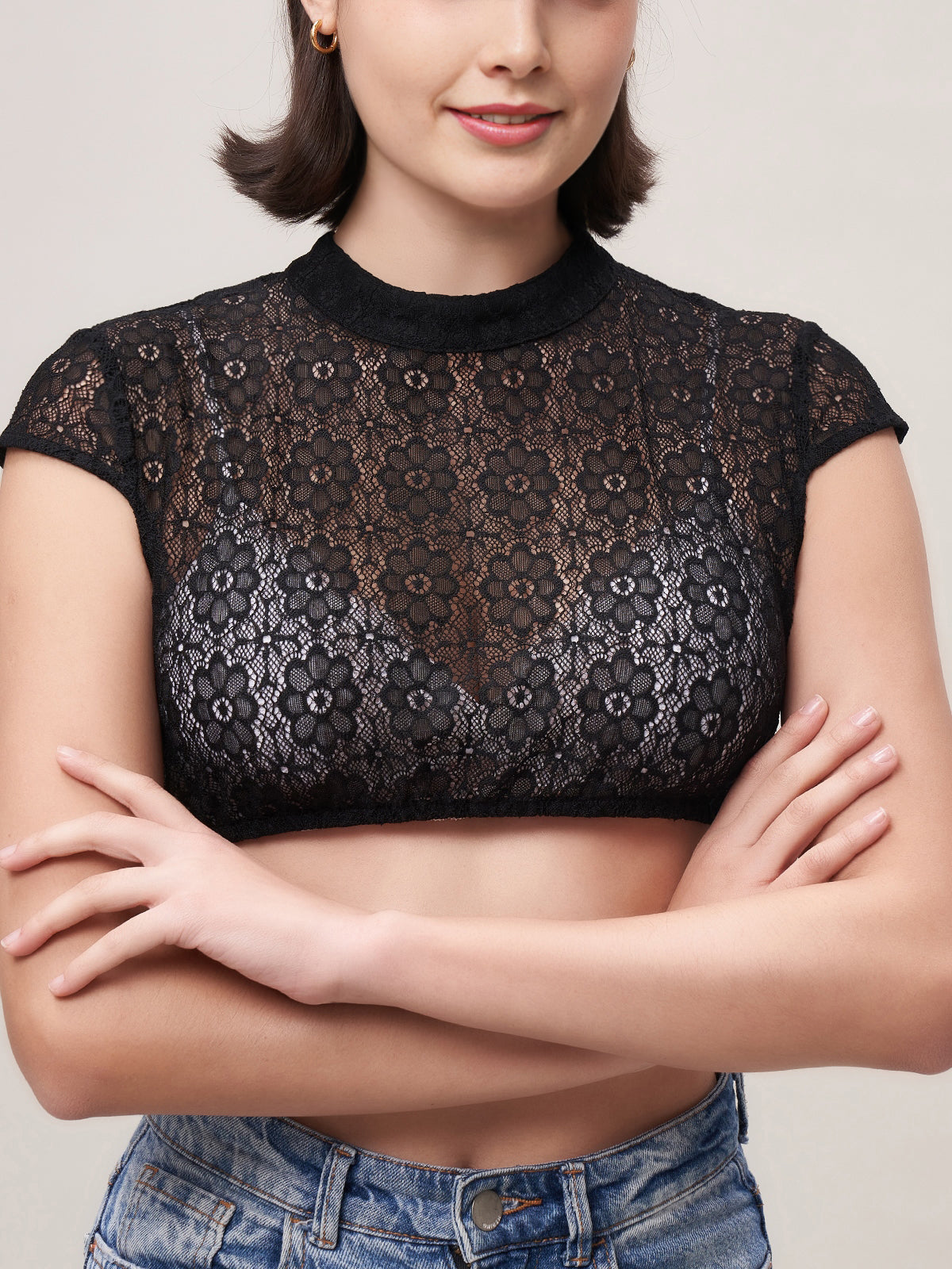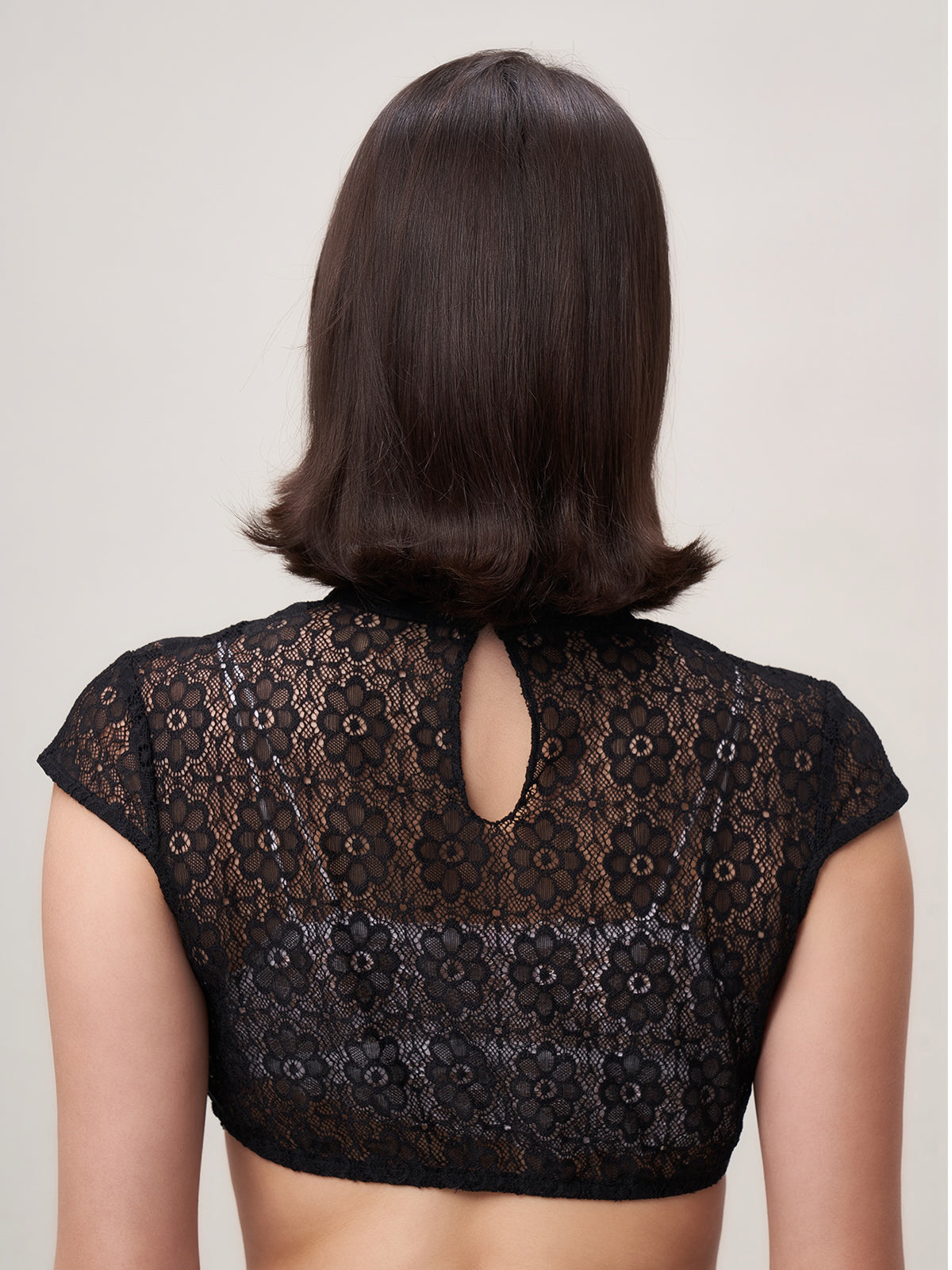 Schwarz Hochgeschlossen Kurzarm Damen Dirndlblusen Eudora