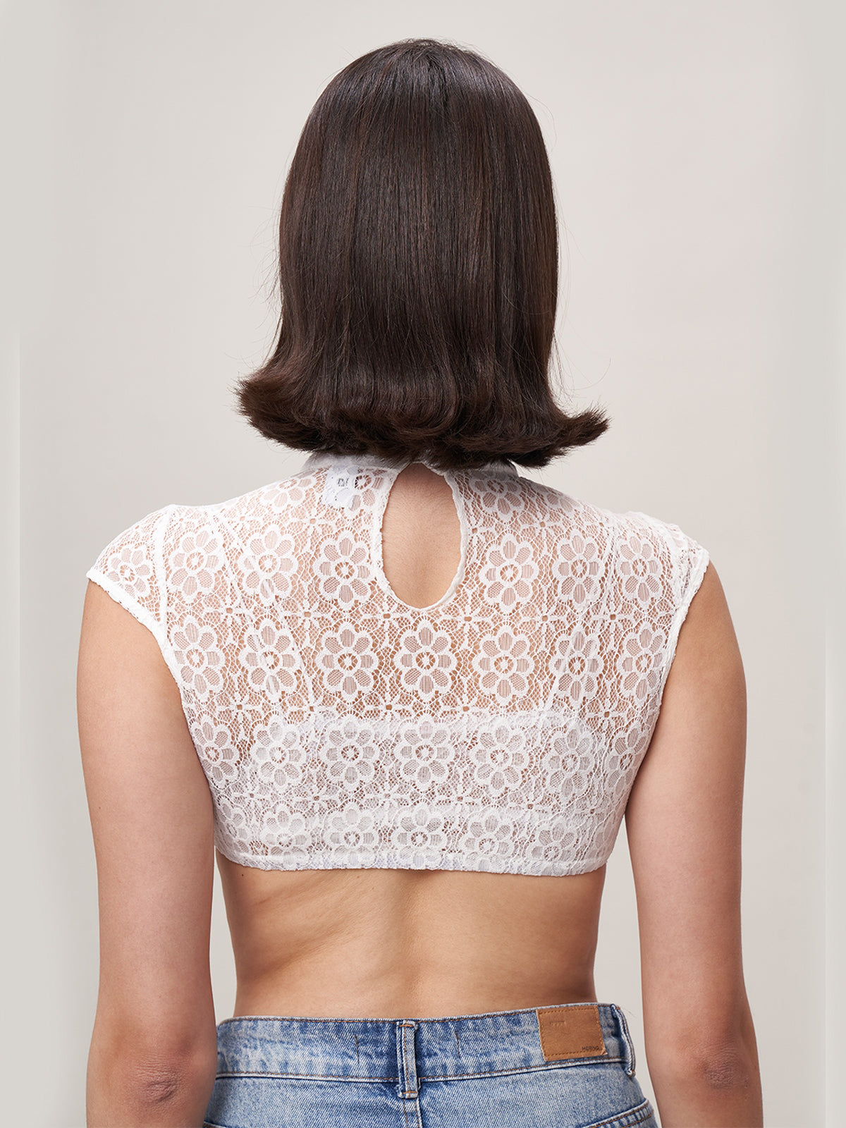 Weiß Hochgeschlossen Kurzarm Damen Dirndlblusen Eudora