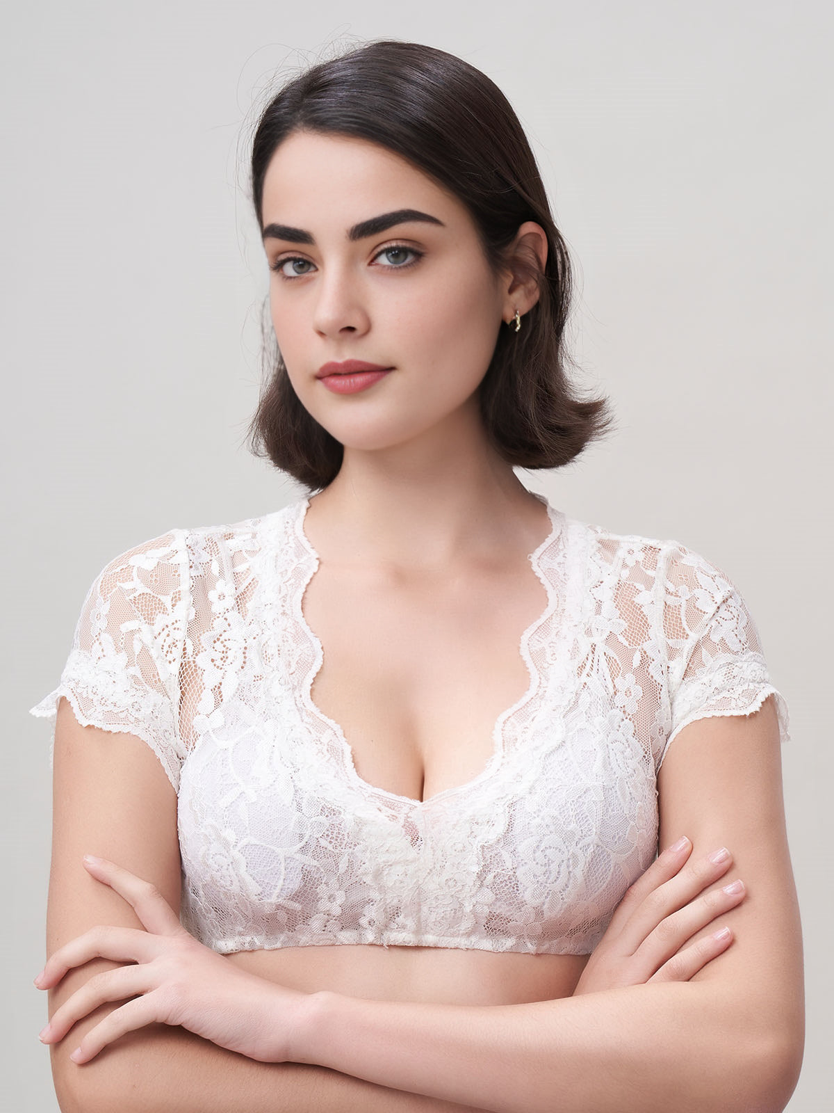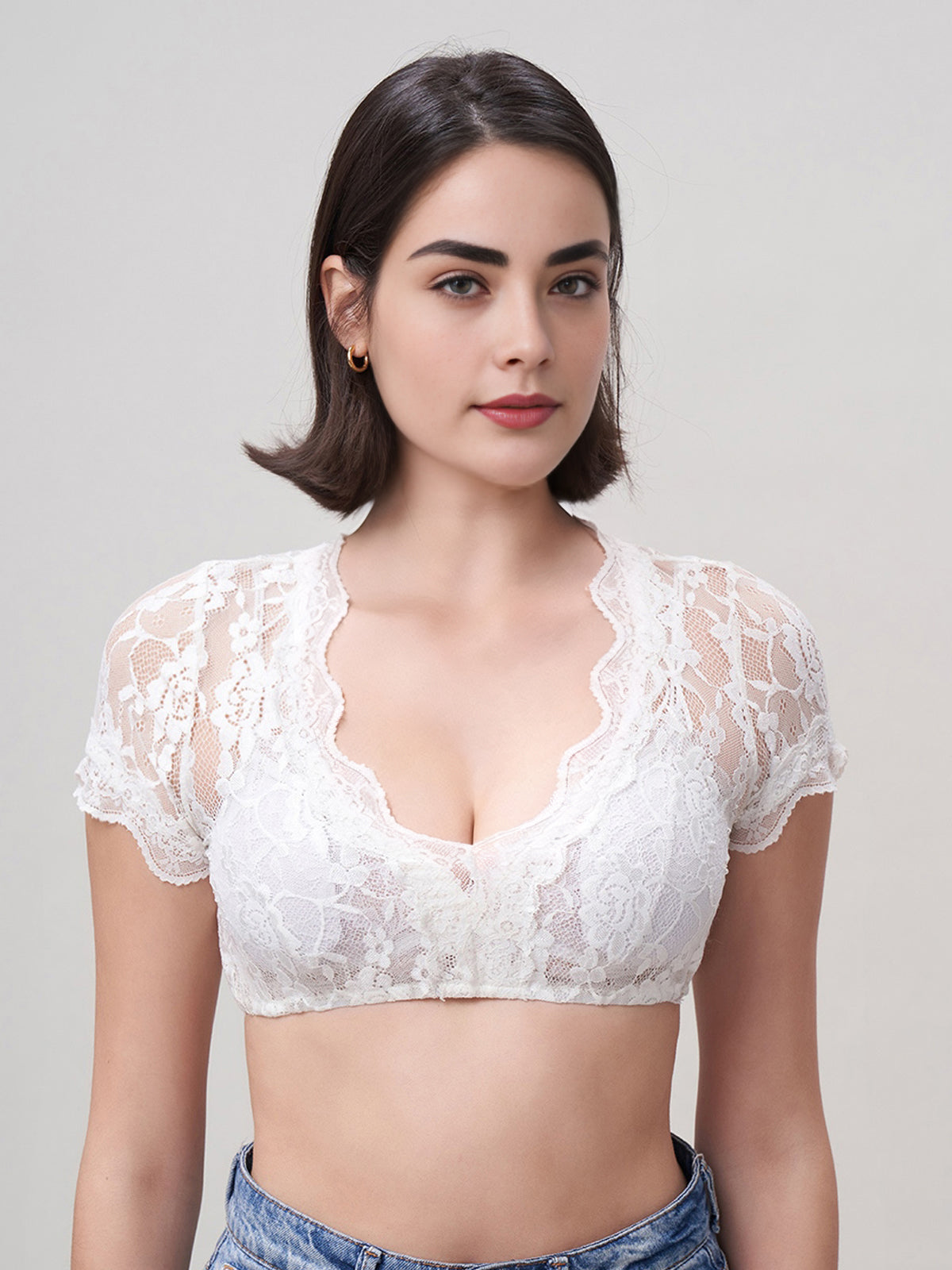 Weiß V-Ausschnitt Kurzarm Damen Dirndlblusen Jasmin