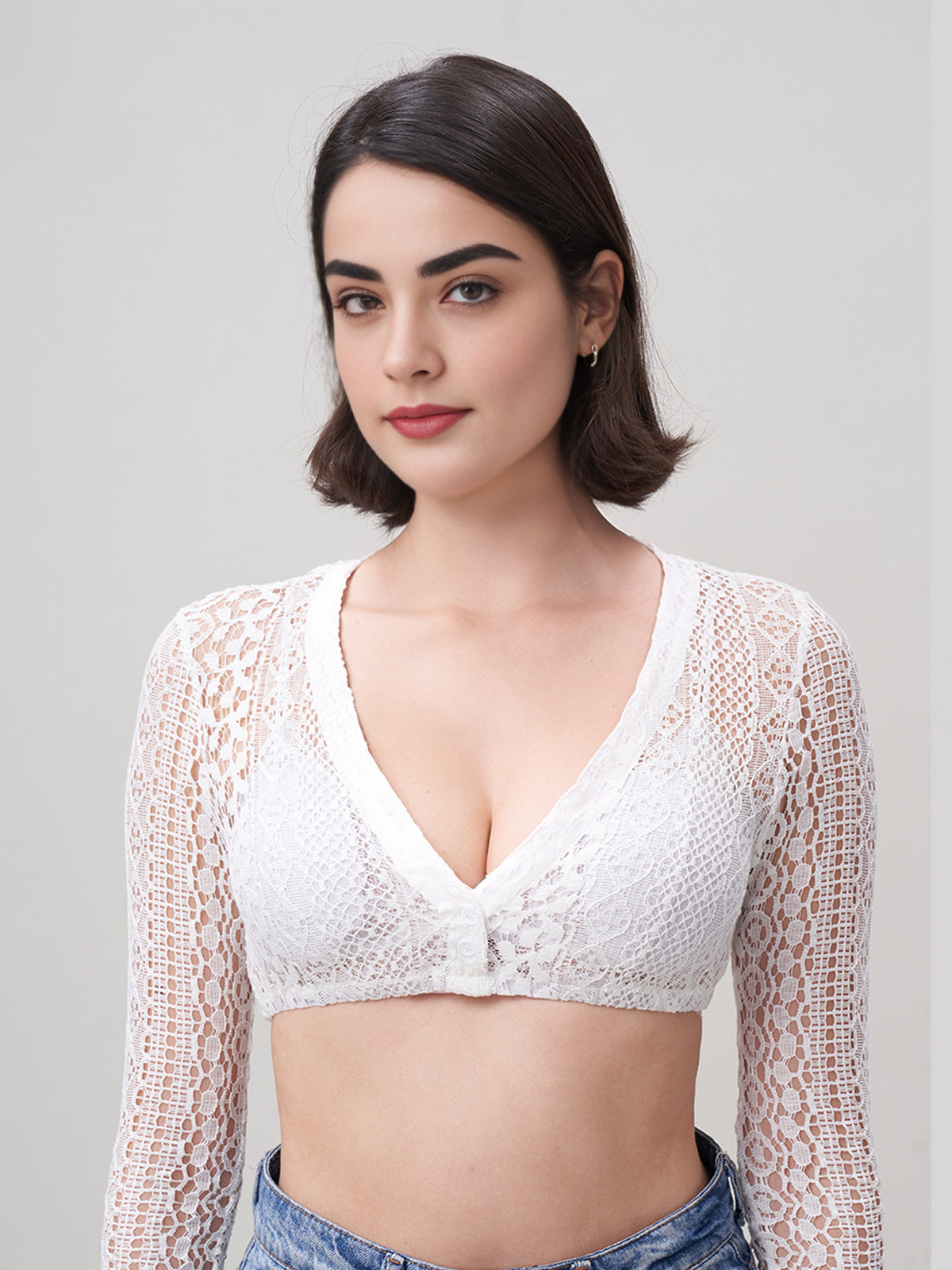 Weiß V-Ausschnitt Langarm Damen Dirndlblusen Lilith
