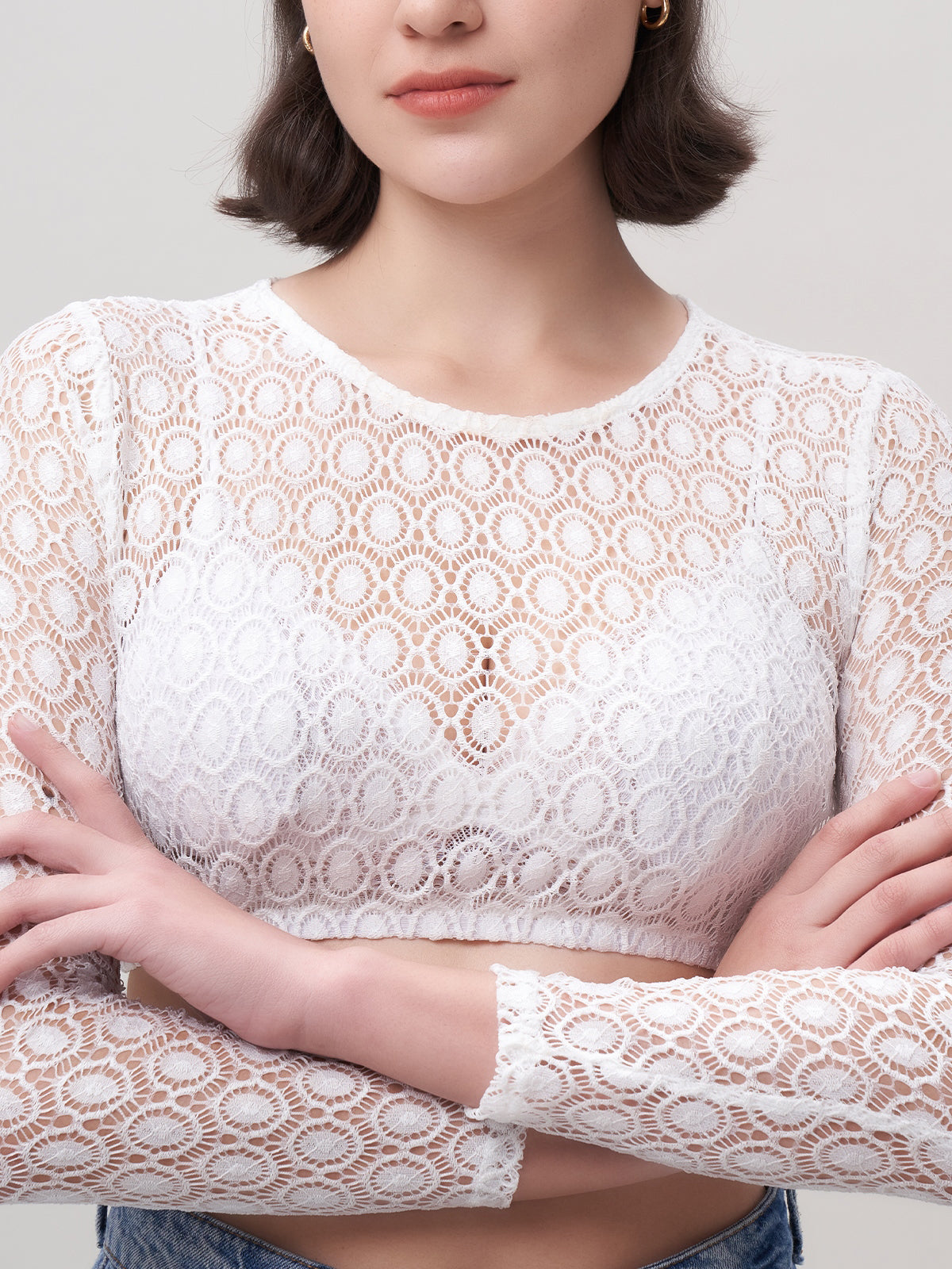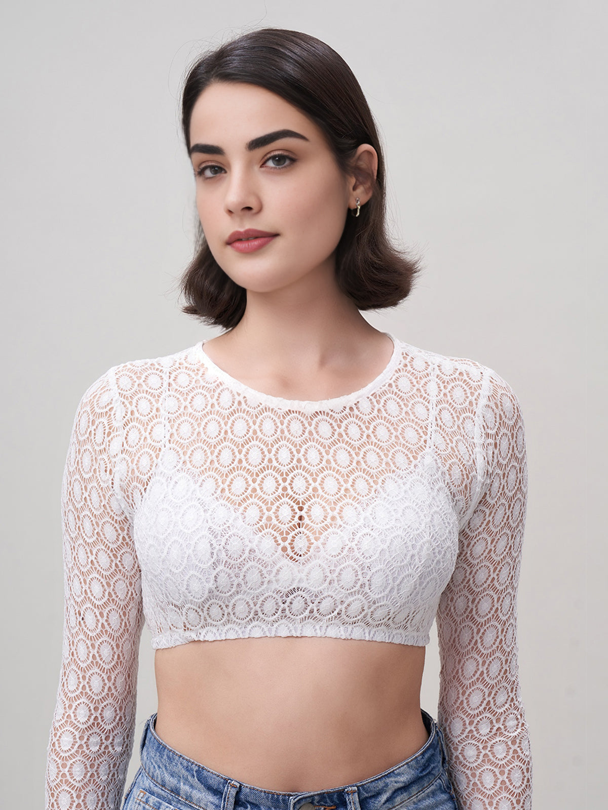 Weiß Rundhals Langarm Damen Dirndlblusen Ronja