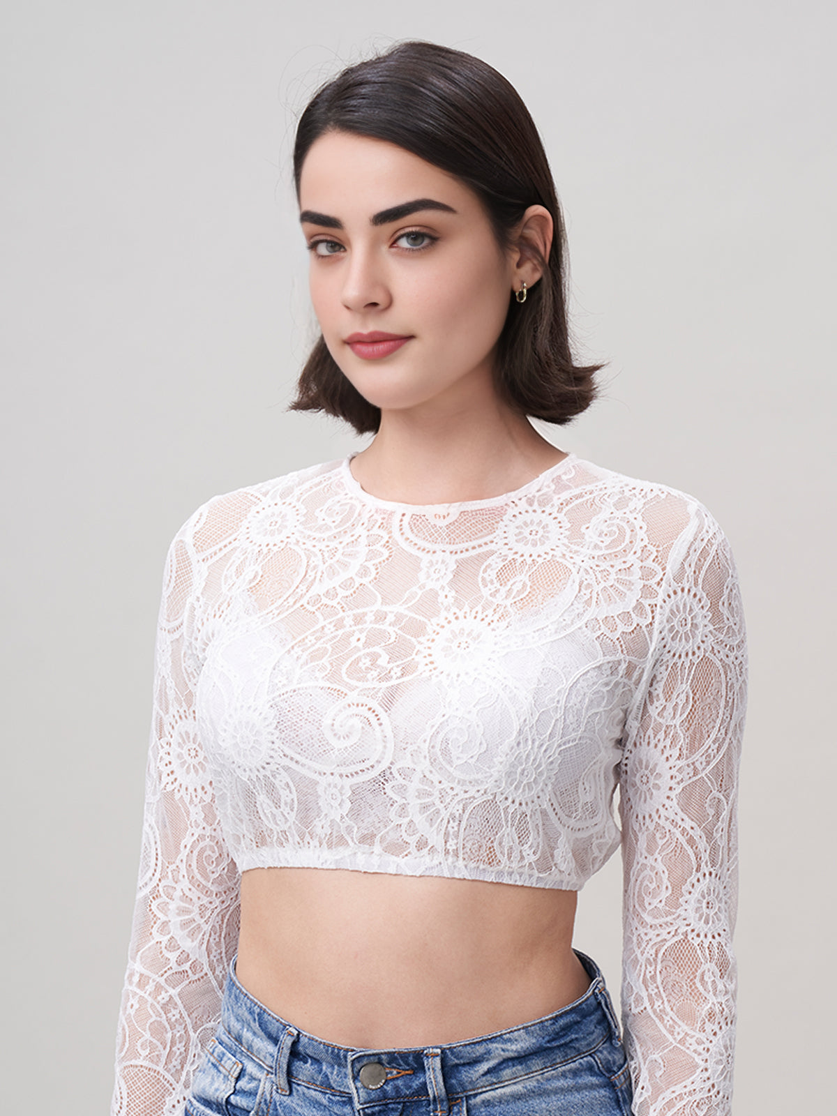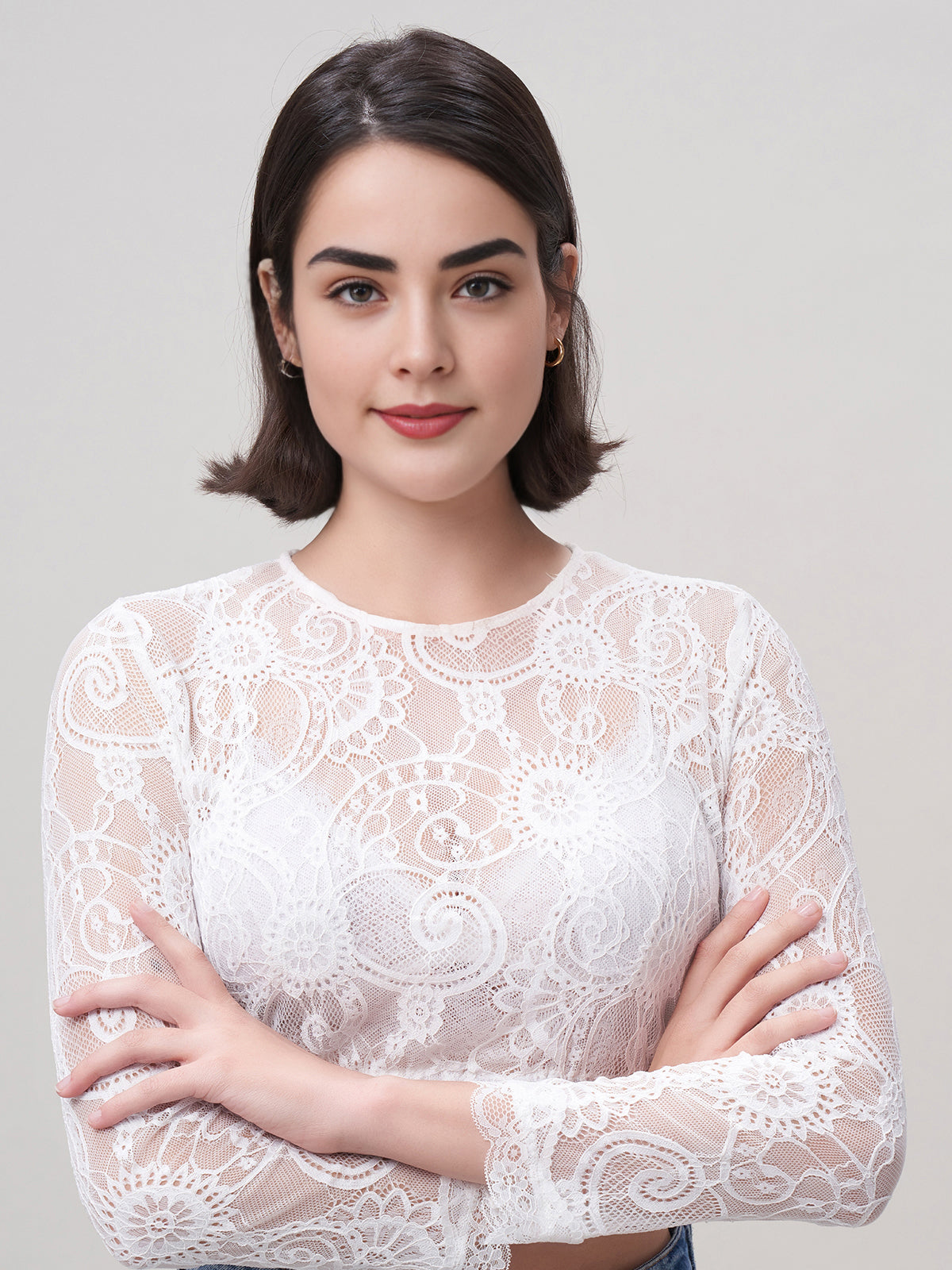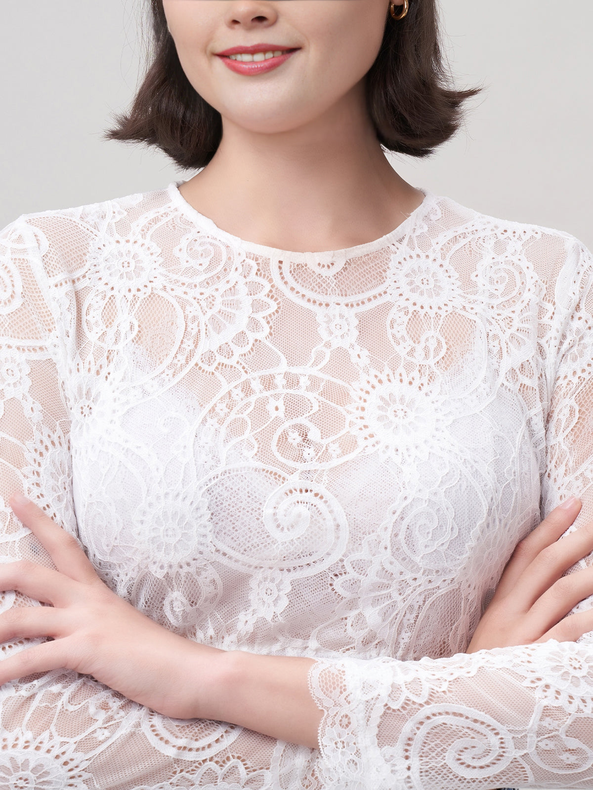 Weiß Damen Rundhals Langarm Dirndlblusen Sober